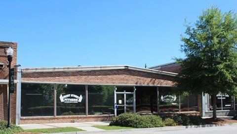 This 1925 building was once three separate stores. At one time Daniel's Grocery and Meats, owned by Billy and Elizabeth Daniel, occupied the left side, the Parnell Shop, a combination gift shop and plumbing business occupied the middle, and Millen Fertilizer was on the right. Hargrove's Millinery, Ray's Shoe Shop, and Clayton's Shoe Shop have also been occupants of part of the building. The center building later became Custom TV when Pat Johnston and his partner, Billy Dickey, opened their TV repair business. Pat eventually bought the buildings on either side of his store. When Pat retired, his daughter, Kiki Conway, opened Kiki's Hallmark Shop. The building was most recently the home of Fashion Sense.