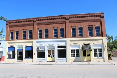 There was a building on the left side of this building that had been Tom Harper Chevrolet before World War II and has since been torn down. In the building pictured had been Christopher's Grocery Store in the '40s and '50s, and at different times, G.W. Jenkins Grocery, Roscoe Pierce's Grocery, and A.J. Jenkins Grocery. The last business to occupy the building was Harry Matthews' Western Auto. For many years after Western Auto closed, it was used for storage, and now an office is located inside.