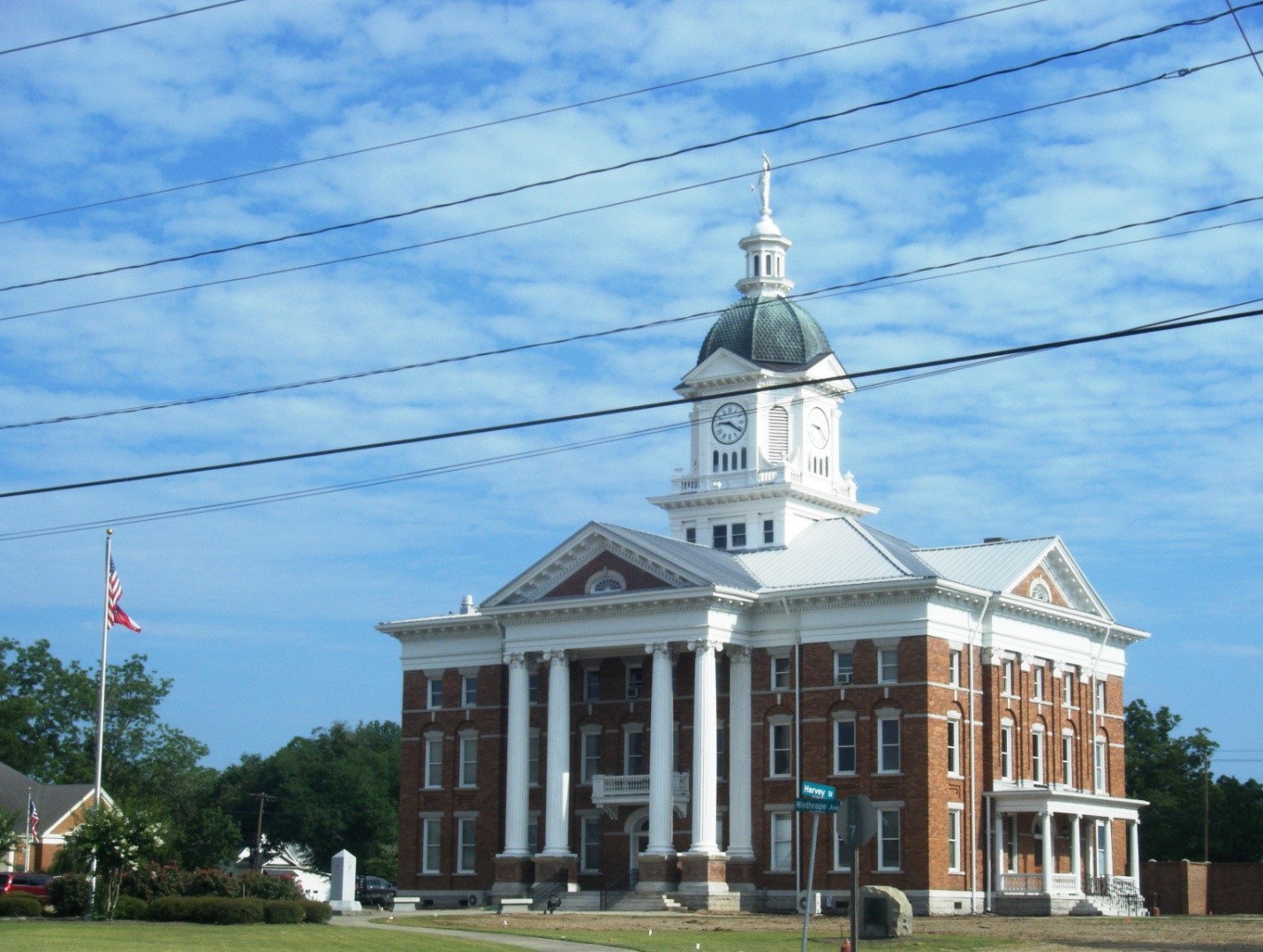 The first Jenkins County Court House was completed in March 1908 and burned in January 1910. The present building, almost identical to the first, was built in the next two years. It is a Neoclassical Revival-style building designed by architect L.F. Goodrich. It is listed in the National Register of Historic Places. A major renovation of the courthouse took place from 1977-1979. The building was gutted entirely except for the Clerk of Court’s office. The marble stairs were removed from the first to second floor and replaced with concrete. The balcony in the courtroom was removed, the ceiling lowered and replaced with offices on a third floor. The building received much needed exterior renovations from 2009-2011.