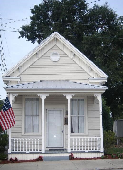 The Holland House, built by John M. Edenfield, dates from 1872. Josiah Holland, a later owner of the house, was a Justice of the Peace and collections agent in the days before the town was incorporated. The house is a two-story, front-gabled Folk Victorian. For many years Ailene Hatcher had a gift shop in the building. Ed Wilson followed her with Ed’s Antiques.