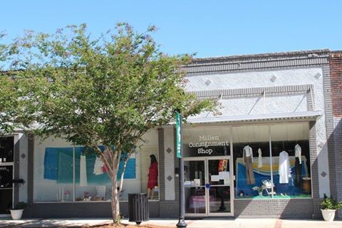 This building at 553 Cotton Avenue was built in 1920. The Charm Barn has been doing business in this location since 1995 when Lee and Leigh Ann Wilson opened the store there. Terri Reeves, the current owner, assumed ownership in 2004. Prior to being home to The Charm Barn, in the late 1930s the building was Sims Grocery (first located where Dwelle Insurance is). It has been a dry goods store, Tinley’s Jitney Jungle (until it built new store where McMillan’s Fish Market was located, and now Railroad Gun and Pawn) and General Dollar. For many years the left side of the building was the Pal Theater until the new Pal was built in the 1960s. The original Charm Barn was located on the corner of Cotton Avenue and Masonic Street. It was owned and operated by Bill and Jackie Landrum from 1953 until 1992. When the Landrums retired in 1992, they leased the store to Sherri Smith who continued to operate the business as The Charm Barn in the same location until 1995. The Landrums sold the property when the new Rite Aid was built. For a more complete history of The Charm Barn, see The History of Millen and Jenkins County by Patricia Fries Hilliard, 2013.