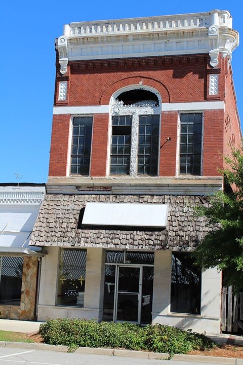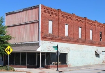 closeThis building, known in Millen as the Opera House or the Edenfield Building, was built around 1900. The Opera House, the last building on the east end of Cotton Avenue, is among the buildings built by Mr. John M. Edenfield, one of the earliest builders in Jenkins County. Upstairs was The Opera House, Millen's first theater, where one of the earliest movies was shown, "Birth of a Nation." It was the center of social life in the area and the site of school graduation services, dances, and many cultural activities. Traveling shows called "Rolling Operas," musicals and plays that came to Millen periodically, were performed in the large upstairs room to audiences of as many as 100 people. Shops and office spaces including Millen Grocery Company (a large wholesale grocery) and a dairy supply owned by James Lee were two of the earlier businesses on the ground floor. Many current Millen residents will remember some members of the 1917 graduating class whose ceremony was held in The Opera House: Walter Harrison, Irma Warren (mother of Jean Edenfield Rountree), Sidney Applewhite Weathers and Beulah Brinson. Jean Rountree, recalling seeing the Opera House when Frank Edenfield, grandson of John M. Edenfield, owned the building, says, "It was an elegant room with beautiful wood floors." The building is currently owned by Mr. Harold Moore. It retains its distinctive architectural features: the front facade is articulated with three arched openings and corresponding arched openings above the windows on the second story. A decorative cast-iron exterior stairway leads to the second floor. According to Mr. Moore, the second floor needs extensive renovation, having been damaged by a fire sometime in the past.
