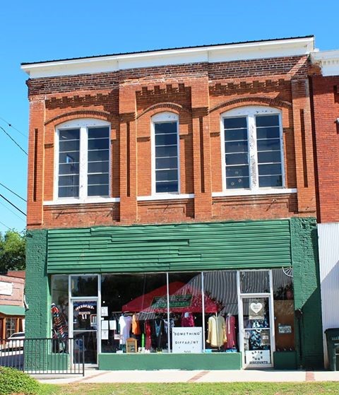 closeN.P. (Nick) Economos, a Greek, constructed this building in 1928 as a home and business. He lived upstairs and had a market below. Charlie Cheers restaurant was there in the ‘30s and ‘40s, and later Johnny Evans ran United 5 and Dime there. Evelyn Young recalls “While now everything is a dollar or more, about 70 years ago, you could buy most anything for a dime in a store like this one. The people who ran the store lived upstairs, which was, back then, rather customary." This building and the one-story building on the corner have been Dr. Lee's Clinic, Roger's Grocery Store, Kaplan's, Pioneer, Welt’s (run by Gene Tallent,), and Hatcher's Gas Company (run by Tubby Hatcher). Mary Sue Newton bought the two-story building and the one-story beside it in 1968 for the Vanity Box. The first person to open The Vanity Box was Martha Mays (Mrs. George), who in another location had a millinery shop she called The Vanity Box. The second Vanity Box owner was Ms. Dean Brinson, who opened her store next to Mills Drug Store; she sold the shop to Mrs. O.P. Long. Mary Sue Newton purchased the Vanity Box in 1965 while it was still next to Mills Drug Store. When the fire in Wilson's Furniture in 1968 destroyed her building, Mary Sue bought the Economous building and the one-story building next to it from the Gray family and moved the Vanity Box there, where she ran the business until 1987. She briefly leased the building, but reopened the Vanity Box and ran it until the late 1990s. When she closed, she sold the building to Tim Newman, who ran Rent-to-Own, Furniture Box, the Music Box, and The Little Pit. Today a church occupies one side of the building and the other side is vacant.